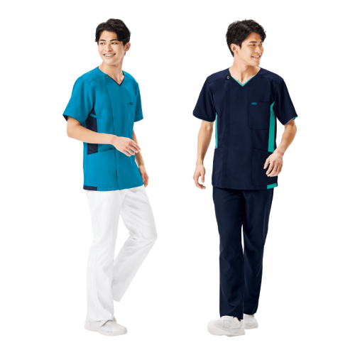 両脇のラインがシャープなシルエットを演出する、男性用スクラブ