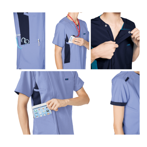 スクラブは羽織るタイプで、着脱のしやすいジップタイプです。